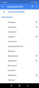 Daraufhin können Sie die Ausgangssprache selber bestimmen (indem Sie auf die Sprache tippen und aus der Liste der verfügbaren Sprachen die gewünschte wählen) oder die App kann die Sprache auch selber erkennen. Bestimmen Sie lieber die Sprache im Voraus, wenn Sie wissen, um welche Sprache es geht, um evtl. Missverständnisse zu vermeiden. Bestimmen Sie danach die Zielsprache.