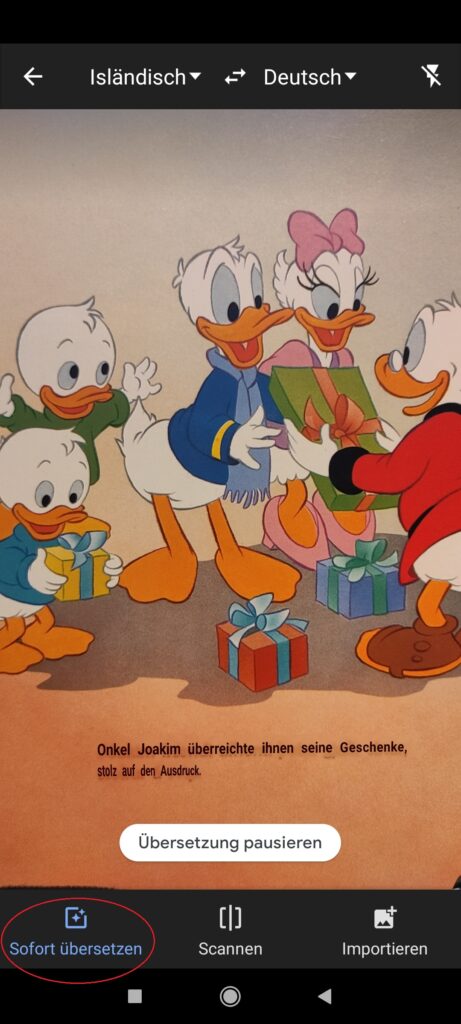Sie können auch ein Foto des Textes machen und später übersetzen. Dazu dient die Funktion Importieren.