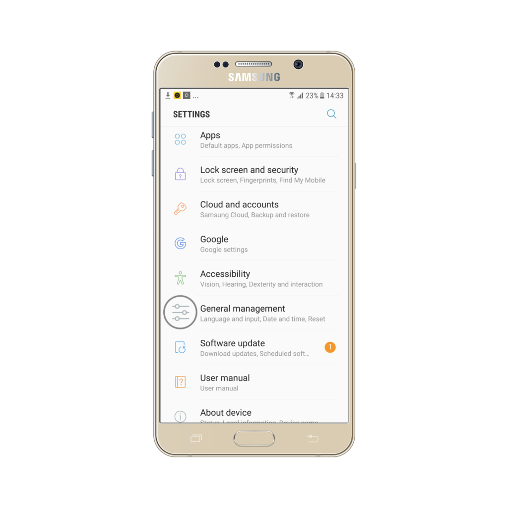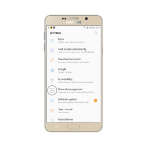 Gehen Sie zum Menü „Settings“ (Einstellungen) und wählen Sie dann „General Management“ (Allgemeines).